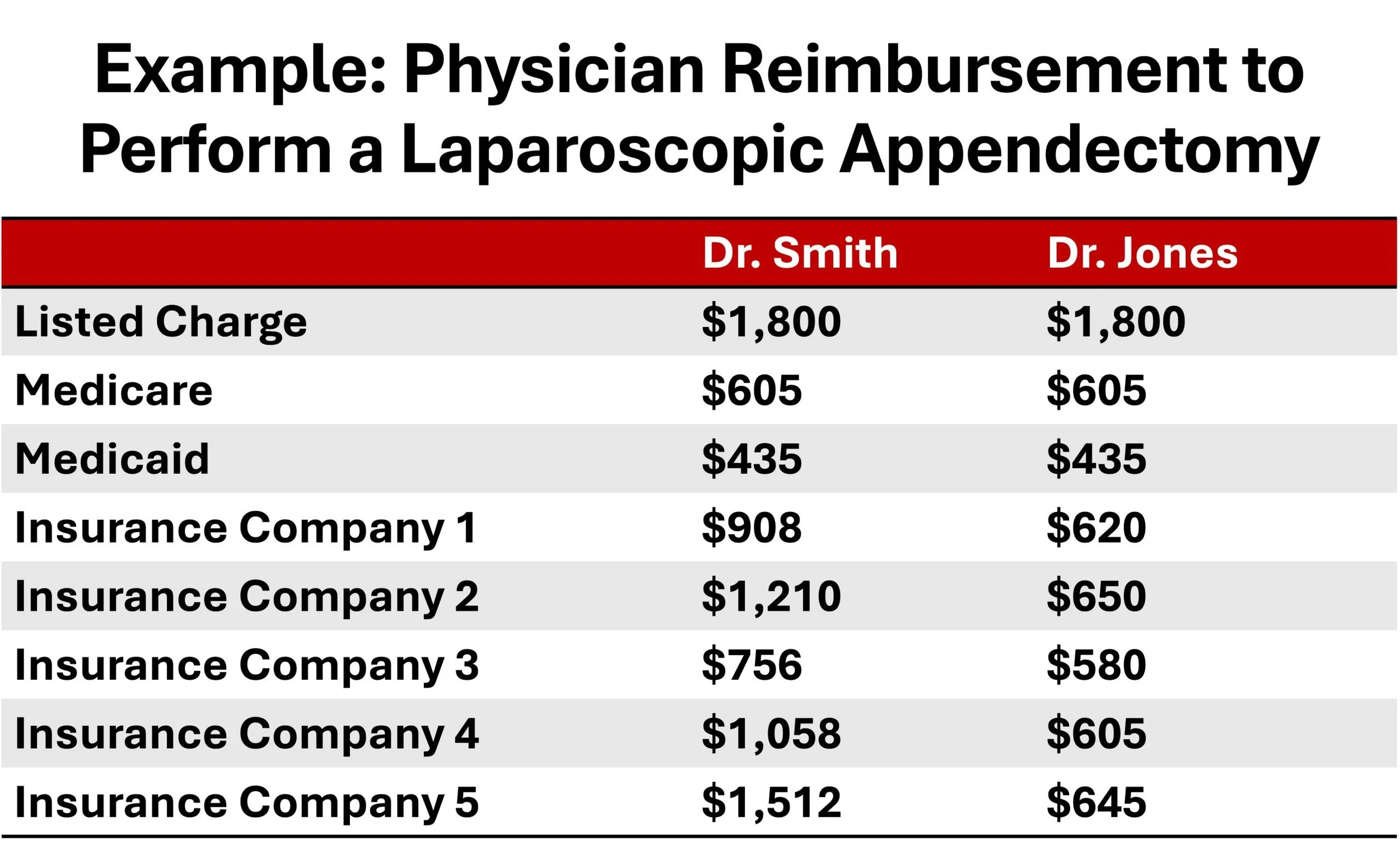 The RUC explains in more detail who sets the “Medicare Rate” establish above that influences payment even in the commercial space. It’s actually simple math! A committee of physicians recommends the “value” of surgery, procedure, and clinic visits/services with the number of RVUS (Relative Value Units) they assign. CMS (Commision of Medicare Services) applies a conversion factor (which as I showed has declined…) to set the “Medicare Payment” rate.