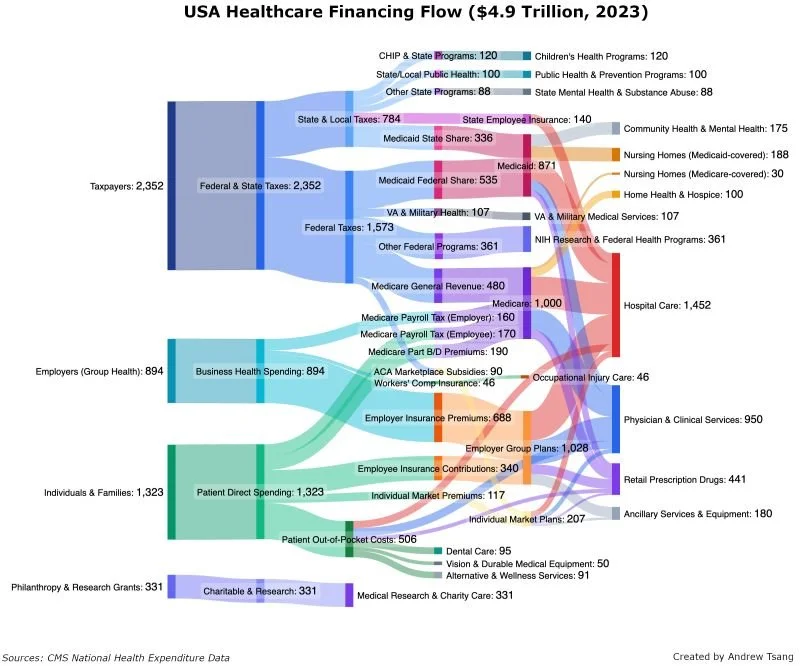Health insurance remains the bane of everyone’s existence - physicians and patients. No one realizes how many different systems of insurance actually exist. You may think you are separate from Medicaid because you pay in cash or because you have fancy employer insurance. But you indirectly or directly subsidize Medicaid, Medicare, and uninsured payments either through your taxes, salary, or your premiums itself. The income diagram for United Healthcare towards the end of the video literally shows you how the giant insurance companies hide their money. If you look at just the premiums total (so Medicare + State + Employer), and then you look at "Medical Costs", the Medical Costs come to 84% of the total premiums. It makes it look like profit is the tiny 21B at the top. However, the "intercompany eliminations" is huge because basically everything coming from Optum gets obfuscated and it does not look like revenue or profit, even though it is.